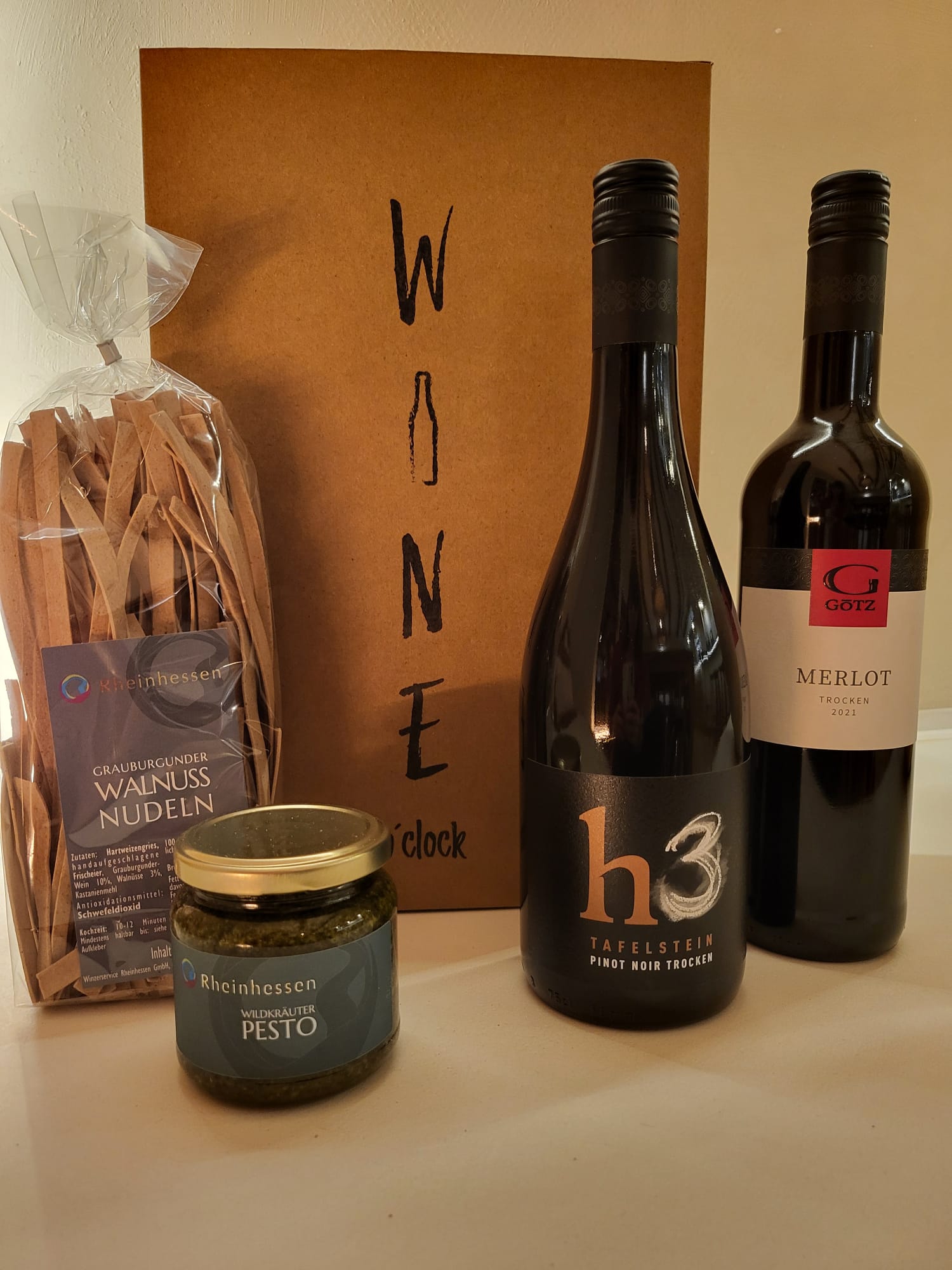 Das perfekte Geschenk für Rotweinliebhaber! Dieses exklusive Genusspaket vereint zwei erstklassige Rotweine vom legendären Tafelstein mit handgemachten Walnuss-Nudeln und aromatischem Wildkräuter-Pesto – ideal für Weihnachten, Geburtstage oder besondere Anlässe.